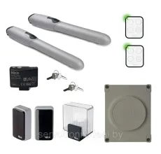 Комплект для распашных ворот со створками шириной до 3,5 м и масой до 500 кг.Преимущества:Запатентованное расположение внутренних частей обеспечивает надежную и бесшумную работу.Удобный механизм аварийной разблокировки, который позволит при отсутствии электроэнергии открыть и закрыть ворота вручную.Амперометрическая система обнаружения препятствий - используется для обнаружения возможных препятствий, которые могут возникнуть во время нормального движения ворот. С помощью этой функции, в случае наличия препятствия, привод остановит створку и изменит направление на обратное.Самоблокирующийся привод. Это означает, что после остановки привода Ваши ворота заперты механически и их нельзя открыть руками. Благодаря этой функции нет необходимости в дополнительной механической блокировке ворот замком.Блок управления приводами с возможностью подключения аккумуляторной батареи резервного питания PS124, которая обеспечит управление воротами даже при отсутствии электроэнергии.Функциональные возможности:Плавный старт и плавная остановка.Режим калитки – частичноге открытие для прохода пешехода.Функция фото-тест. Перед началом любого движения, блок управления автоматически проверяет работу всех подключенных фотоэлементов, и если все работает как надо, ворота приводятся в движение.Возможность подключения электромеханического замка.Разъем SM для подключения радиоприемников.Регулировка характеристик работы каждого привода.Артикул: 229