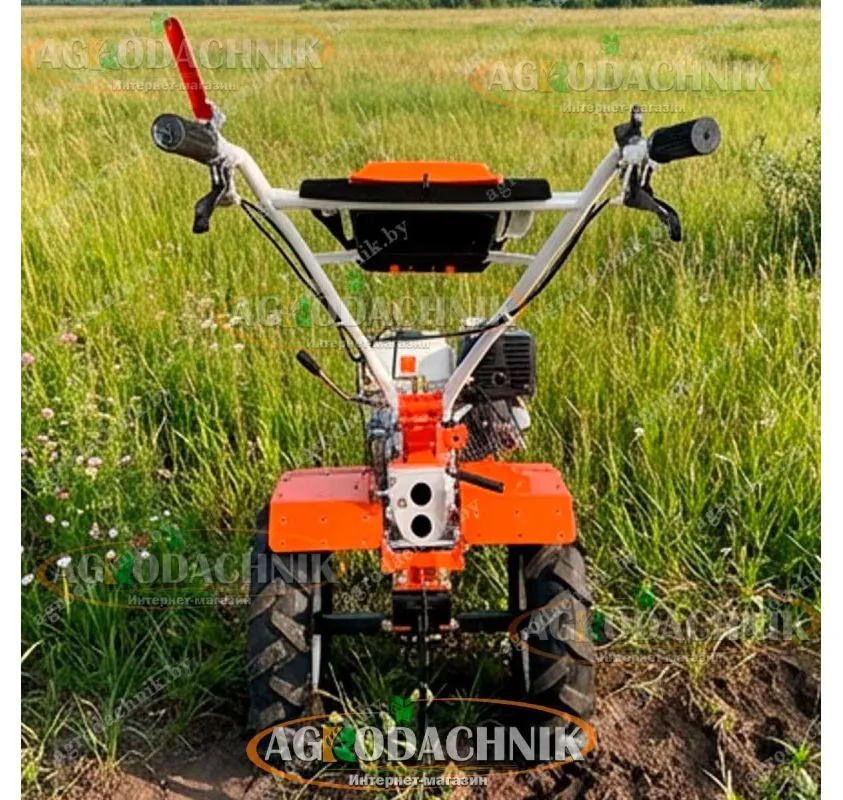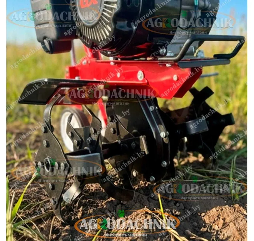 Мотоблок Shtenli 1030N-L: Новый уровень тяги - Когда задачи на участке выходят за рамки простой культивации грядок и требуют серьезных тяговых усилий, нужен агрегат с запасом прочности. Мотоблок Shtenli 1030N-L - это техника тяжелого класса, спроектированная для работы с плугом, окучником и перевозки грузов по бездорожью. Главное отличие этой модели от младших собратьев - использование полностью шестеренчатого редуктора. Это обеспечивает прямую передачу крутящего момента без потерь, что делает 1030N-L настоящим "трактором" в миниатюре. Вес до 120 кг (в полной снаряженной массе) гарантирует отличное сцепление с грунтом без пробуксовки. Силовой агрегат 8.5 л.с. Под капотом скрывается мощный 4-тактный двигатель GX260s объемом 277 куб.см. Он выдает честные 8.5 лошадиных сил, что позволяет уверенно работать даже на тяжелых суглинистых почвах. Система верхнего расположения клапанов (OHV) в сочетании с эффективным воздушным охлаждением обеспечивает стабильную работу под нагрузкой. Увеличенный топливный бак на 6 литров позволяет работать весь день без дозаправки. Запуск облегчен декомпрессионным клапаном (Easy Start). Широкий захват и глубокое рыхление В комплект входят не только пневматические колеса 4x8, но и набор из 24 кованых фрез. Благодаря мощности мотора, ширина обработки может достигать 110 см, а глубина - 30 см. Это позволяет быстро подготовить большой участок к посадке картофеля или зерновых. Конструкция предусматривает возможность замены штатных колес на большие размеры (6x12 или 7x12 дюймов), что значительно увеличивает клиренс и проходимость при работе с окучником. Шестеренчатый редуктор Крутящий момент передается на колеса через усиленные шестигранные полуоси диаметром 23 мм. В отличие от ременных моделей, здесь используется полностью шестеренчатая трансмиссия в чугунном корпусе. Это решение исключает проскальзывание и потерю мощности, обеспечивая максимальную тягу на колесах. Коробка передач (2 вперед / 1 назад) позволяет выбрать оптимальную скорость для пахоты или транспортировки грузов. Сцепка для навесного Shtenli 1030N-L оснащен универсальным сцепным кронштейном, совместимым с большинством видов навесного оборудования. Вы можете подключить плуг, окучник, картофелекопалку или грузовой прицеп. Регулируемый сошник позволяет контролировать заглубление фрез и скорость движения. Руль с 3D-регулировкой настраивается по высоте и углу поворота, что удобно при работе вплотную к заборам или теплицам. Немецкие стандарты Руководство пользователя Нажмите на изображение, чтобы скачать инструкцию (PDF): Тяжеловес для серьезных задач Shtenli 1030N-L - это выбор фермеров и владельцев больших участков. Мощный двигатель, надежный шестеренчатый редуктор и солидный вес делают его незаменимым помощником при пахоте целины и перевозке тяжелых грузов.
