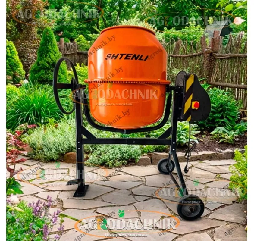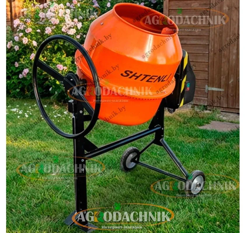 Бетономешалка Shtenli PRO 190: Флагман строительной площадки - Когда масштабы строительства выходят за рамки косметического ремонта и требуют кубометров бетона, компромиссы недопустимы. Заливка плит перекрытия, устройство отмостки вокруг большого коттеджа или бетонирование дорожек на просторном участке - для таких задач нужен серьезный агрегат. Shtenli PRO 190 - это самая вместительная модель в серии, созданная для тех, кто привык работать с размахом. Этот бетоносмеситель позволяет бригаде из 3-4 человек работать без пауз, непрерывно получая свежий раствор. Сочетание максимального объема барабана и проверенной немецкой инженерии делает данную машину незаменимым инструментом на объектах, где важна каждая минута. Силовой агрегат 1100 Вт Вращать барабан объемом почти 200 литров, заполненный тяжелой смесью щебня и цемента, - задача не из легких. Поэтому PRO 190 оснащена электромотором мощностью 1100 Вт. Этот запас тяги гарантирует уверенный старт даже при полной загрузке и стабильное поддержание оборотов в процессе замеса. Двигатель надежно укрыт под кожухом из ударопрочного пластика. Конструкция соответствует классу защиты IP 44, предотвращая попадание внутрь влаги и строительной взвеси. Эффективное воздушное охлаждение позволяет эксплуатировать технику в интенсивном режиме, не опасаясь перегрева обмотки. Износостойкий привод: Сталь и Чугун В профессиональной линейке Shtenli нет места хрупкому пластику. Крутящий момент передается через ведущую шестерню из закаленной стали на массивный чугунный венец барабана. Такая пара трения обладает исключительной живучестью в условиях абразивной среды стройплощадки. Механизм не боится случайного попадания песка или мелкого гравия между зубьями. Он обеспечивает плавное вращение емкости со скоростью 28 об/мин, что является оптимальным показателем для получения однородной, качественной смеси без сухих комков. Управление ногой: Эргономичный фиксатор Работа с большими объемами раствора требует физических усилий, поэтому управление мешалкой должно быть максимально простым. Модель PRO 190 оснащена ножной педалью разблокировки опрокидывающего механизма. Это позволяет менять угол наклона барабана, не нагружая спину и руки. Штурвал большого диаметра дает возможность точно дозировать выгрузку готового бетона. Вы можете зафиксировать бак в любом удобном положении - как для интенсивного перемешивания, так и для аккуратного слива смеси в тачку или непосредственно в опалубку. Внешний подшипник: Простота сервиса Даже самая выносливая техника нуждается в обслуживании. Инженеры Shtenli позаботились о том, чтобы этот процесс был быстрым и дешевым. Опорный подшипник вынесен в отдельный внешний узел под дном барабана. Такая конструкция изолирует деталь от перегрева и агрессивной химии бетона. А в случае износа замена производится за считанные минуты, без необходимости разбирать весь агрегат. Это решение существенно снижает стоимость владения оборудованием. Рекордная производительность: 110-130л смеси Главный козырь Shtenli PRO 190 - это объем. Барабан на 190 литров позволяет получать до ≈ 110-130л готового раствора за один замес. Это максимальный показатель в линейке бытовых бетоносмесителей 220В. На практике это означает, что за один цикл вы перерабатываете более 3 мешков сухой смеси с наполнителями. Такая производительность 
