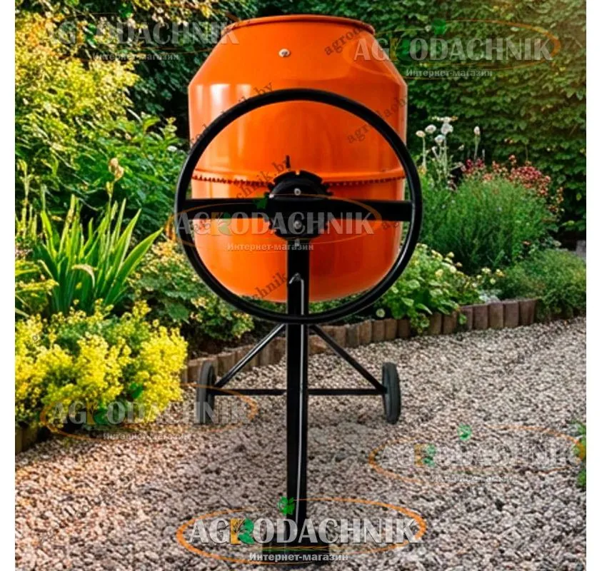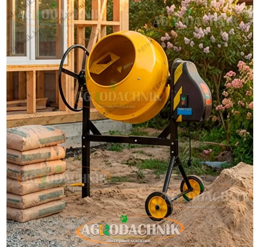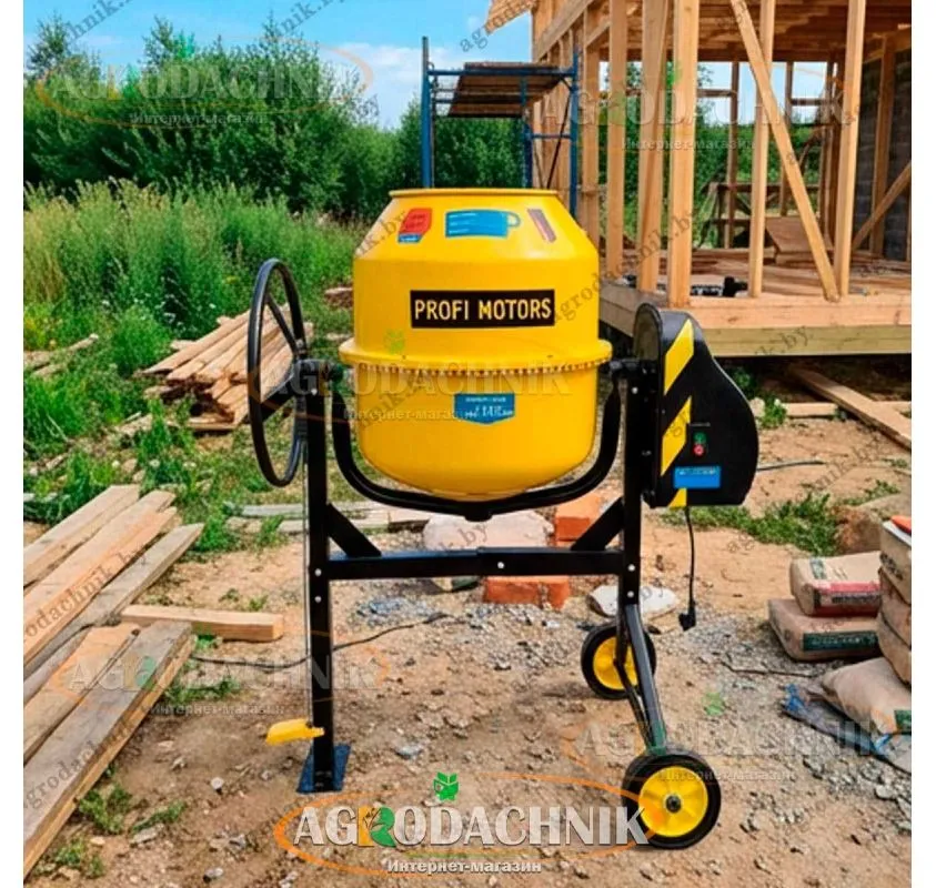 Бетономешалка Profi-motors v150: Производительность для вашего участка - Частное строительство требует взвешенных решений. Когда нужно залить фундамент под баню, забетонировать двор или возвести пристройку к дому, компактных моделей уже недостаточно, а промышленные агрегаты слишком дороги. Profi-motors v150 занимает нишу "золотой середины", предлагая увеличенную мощность и вместимость по разумной цене. Этот агрегат разработан для тех, кто ценит скорость работы. Благодаря барабану на 150 литров и 900 ваттному двигателю, вы сможете готовить больше раствора за один замес, экономя время и электроэнергию. Простая и понятная конструкция делает эту модель отличным выбором для мастеров любого уровня подготовки. Мощный электропривод 900 Вт Для эффективного перемешивания больших объемов смеси требуется соответствующая тяга. Модель v150 оснащена электродвигателем мощностью 900 Вт. Этот запас "лошадиных сил" позволяет агрегату уверенно стартовать с полным баком и поддерживать стабильные обороты даже при работе с тяжелым бетоном. Безопасность эксплуатации обеспечивает герметичный кожух из ударопрочного пластика. Он соответствует классу защиты IP 44, что исключает попадание влаги и строительной пыли на токоведущие части. Двигатель не требует сложного обслуживания и готов к работе сразу после включения в бытовую сеть 220В. Усиленная трансмиссия: Сталь и Чугун Главный нагруженный узел бетономешалки выполнен по классической схеме, проверенной десятилетиями. Вращение передается через ведущую шестерню из закаленной стали на массивный чугунный венец. Такое сочетание металлов обеспечивает высокую механическую прочность. В отличие от пластиковых аналогов, стальная шестерня не боится абразивного износа от песка и цемента. Зубчатая передача работает плавно, обеспечивая скорость вращения барабана 28 об/мин. Это оптимальный режим для получения однородной смеси без сухих комков и непромешанных участков. Эргономика: Ножная система фиксации Работа с бетоном - тяжелый физический труд, и Profi-motors v150 призвана его облегчить. Агрегат оборудован удобной педалью разблокировки механизма опрокидывания. Это позволяет оператору менять угол наклона барабана, используя силу ног, а не спины. Большой штурвал управления дает полный контроль над процессом выгрузки. Вы можете зафиксировать емкость в нужном положении для интенсивного перемешивания или плавно вылить готовый раствор в тачку, избегая разбрызгивания. Внешний подшипник: Простота сервиса Ремонтопригодность - важный критерий для строительной техники. В данной модели опорный подшипник вынесен в отдельный внешний узел под дном бака. Это конструктивное решение защищает деталь от перегрева и агрессивной щелочной среды бетона. Если со временем возникнет необходимость замены подшипника, процедура займет минимум времени и не потребует полной разборки бетономешалки. Доступ к узлу открыт, что позволяет быстро вернуть оборудование в строй прямо на объекте. Результат: до 100 литров смеси Profi-motors v150 позволяет значительно ускорить темпы строительства. Геометрический объем барабана 150 литров дает возможность получать на выходе от 85 до 100 литров готового раствора за один цикл. Этого объема достаточно, чтобы полностью заполнить большую строительную тачку. Агрегат весит 58 кг, но благодаря прочной раме и колесам его легко пере