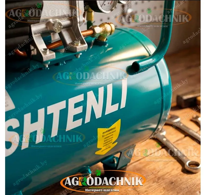 Воздушный компрессор Shtenli 50 Pro: Двойной запас воздуха - Для серьезных задач в гараже или мастерской нужен инструмент с запасом прочности. Shtenli 50 Pro - это мощный масляный компрессор, который отличается от младшей модели увеличенным в два раза объемом ресивера. 50 литров сжатого воздуха позволяют выполнять более длительные операции без частых запусков двигателя. Это идеальный выбор для тех, кто планирует не только подкачивать шины, но и заниматься покраской, работать с пневмостеплером или продувать сложные узлы техники. Надежный немецкий бренд гарантирует качество и долговечность. Прямой привод 1.8 кВт Высокую производительность (300 л/мин на входе) обеспечивает электродвигатель мощностью 1.8 кВт. Он работает от стандартной сети 220В/50Гц, что делает его универсальным для любого гаража. Коаксиальный (прямой) привод гарантирует максимальную передачу энергии на поршень без потерь. Система масляной смазки защищает цилиндр от перегрева и износа, обеспечивая стабильную компрессию на протяжении всего срока службы. Ресивер 50 литров Ключевое преимущество этой модели - вместительный 50-литровый ресивер. Большой запас воздуха сглаживает пульсации давления, что критически важно при качественной покраске краскопультом. Кроме того, это снижает частоту включения/выключения двигателя, продлевая его ресурс. Максимальное давление в системе достигает 8 бар, чего достаточно для большинства пневмоинструментов. Точный контроль давления Для удобства оператора компрессор оснащен блоком автоматики (прессостатом) и двумя манометрами. Один показывает давление внутри бака, второй - на выходе к инструменту. С помощью редуктора вы можете точно настроить выходное давление под конкретную задачу. Быстросъемные соединения позволяют менять шланги и насадки за секунды. Удобство перемещения Несмотря на вес 27 кг, перемещать установку по мастерской очень легко. Она оснащена прочными колесами и удобной металлической рукояткой. Опорная ножка с резиновой подушкой гасит вибрации во время работы, снижая уровень шума и предотвращая смещение компрессора. Немецкое качество Shtenli Руководство пользователя Нажмите на изображение, чтобы скачать инструкцию (PDF): Оптимальный объем Shtenli 50 Pro - это универсальный солдат для домашней мастерской. Объем 50 литров открывает возможности для покраски и работы с пневматикой, а надежная конструкция гарантирует долгие годы службы.