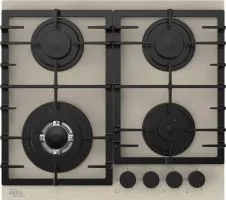 Установка: независимая; Тип панели: газовая; Номинальная мощность: 9.8; Материал решеток: чугун; Материал панели: закаленное стекло; Всего конфорок: 4; Конфорок газовых: 4; Газ-контроль конфорок; Конфорка WOK; Расположение панели управления: спереди; Электроподжиг; Тип электроподжига: автоматический; Вид управления: механический