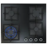 Тип панели: газовая; Материал панели: закаленное стекло; Всего конфорок: 4; Газ-контроль конфорок; Расположение панели управления: спереди; Переключатели: поворотные; Электроподжиг; Вид управления: механический; Чугунные решетки