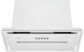 Вид: встраиваемая; Тип пристенной вытяжки: скрытая; Цвет корпуса: белый; Производительность: 1000; Тип управления: механическое; Элементы управления: кнопочное; Количество скоростей: 3; Стиль: современный; Индикация: светодиодная; Угольный фильтр (в комплекте); Материал корпуса: Сталь; Потребляемая мощность: 195; Количество двигателей: 1; Фильтр: жировой; Расположение мотора: встроенный
