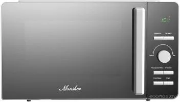 Объем: 20; Расположение: отдельно стоящая; Цвет корпуса: зеркальный, серебристый; Тип: микроволны (соло); Специальная отделка; Мощность микроволн: 700; Количество уровней мощности: 5; Потребляемая мощность: 1150; Внутреннее покрытие камеры: эмаль; Открывание дверцы: ручка; Дверца: распашная; Поворотный стол; Тип управления: электронное; Блокировка от детей; Часы