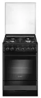 Тип варочной панели: газовая; Тип духового шкафа: газовый; Цвет модели: черный; Материал решеток варочной поверхности: чугун; Материал варочной поверхности: эмалированная сталь; Материал панели управления: закаленное стекло; Управление конфорками стола: механическое; Тип направляющих духового шкафа: проволочные; Ящик для посуды: выдвижной; Крышка плиты; Электророзжиг горелок стола: на панели управления; Электорозжиг духового шкафа: на панели управления; Газ-контроль духового шкафа; Таймер; Функция таймера: звуковой сигнал; Контроль температуры духового шкафа: терморегулятор; Гриль; Жаровня; Противень; Вертел; Комплект ножек регулировочных; Ширина: 50; Глубина: 58; Высота: 85