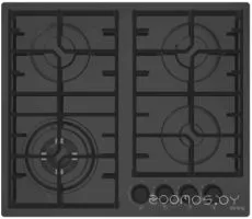 Установка: независимая; Тип панели: газовая; Материал решеток: чугун; Материал панели: закаленное стекло; Всего конфорок: 4; Конфорок газовых: 4; Газ-контроль конфорок; Расположение панели управления: спереди; Электроподжиг; Тип электроподжига: автоматический; Вид управления: механический