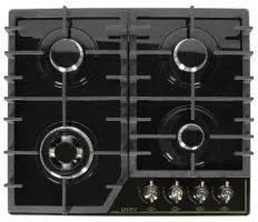 Тип подключения: Газовый; Количество зон приготовления: 4; Цвет модели: Черный; Материал варочной поверхности: Стекло; Материал решеток варочной поверхности: Чугун
