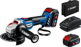 Скорость вращения: 10000; Питание: аккумулятор; Резьба шпинделя: M14; Диаметр диска: 125; Защита от пыли; Прорезиненная рукоятка; Диаметр посадочного отверстия: 22.2; Материал корпуса: пластик/резина; Тип рукоятки: двухпозиционная; Максимальная частота вращения диска: 10000; Минимальная частота вращения диска: 4000; Цвет: черный/синий; Регулировка скорости оборотов: есть; «Константная» электроника: есть; Ограничение пускового тока: есть; Фиксация шпинделя: есть; Защита от перегрузок; Система стабилизации оборотов; Тормоз двигателя; Блокировка кнопки включения; Плавный пуск; Вес: 2; Ширина: 31; Высота: 11; Глубина: 37; Дополнительная рукоятка; Зажимная гайка; Количество зарядных устройств: 1; Защитный кожух; Ключ для смены диска; Суперфланец; Комплектация: зажимной ключ, инструкция по эксплуатации, защитный кожух, быстрозарядное устройство, коробка, сумка, рукоятка