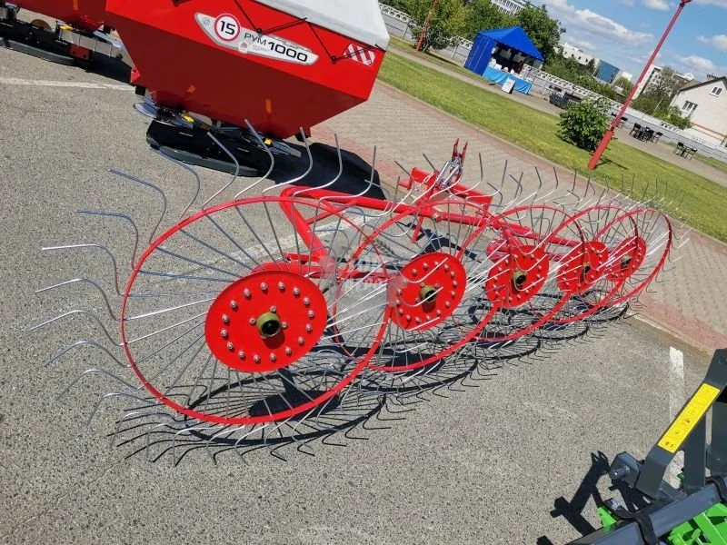 О товаре: Грабли-сеноворошилки ГВН5 – это высокоэффективная техника, предназначенная для обработки сена. Грабли производятся в Беларуси и крепятся к трактору с помощью трехточечного навесного устройства, требуя минимальной мощности трактора от 22 л.с. Ширина обработки составляет 300 см, что позволяет быстро и эффективно выполнять работы по ворошению и сгребанию скошенной травы в ровные ряды. Грабли-сеноворошилки имеют пять секций, которые обеспечивают равномерное распределение нагрузки и высокую производительность. Одним из главных преимуществ ГВН5 является отсутствие необходимости подключения к валу отбора мощности (ВОМу). При движении трактора колеса цепляются за землю и начинают синхронное вращение за счет центробежной силы. Это позволяет эффективно захватывать скошенную массу без земли, так как 4-5 зубьев постоянно контактируют с почвой. Зубья изготовлены из пружинной стали диаметром 7 мм и имеют изогнутую форму, что позволяет им работать на изгиб и кручение сразу в двух плоскостях. Благодаря оцинковке все зубья надежно защищены от коррозии. Габариты граблей-сеноворошилок ГВН5 составляют 370 см в длину, 320 см в ширину и 120 см в высоту, при весе 140 кг. Особая конструкция рамы с усиленными демпфирующими пружинами обеспечивает надежную работу на неровностях рельефа. Все сварные соединения проварены толстым швом по всему периметру соединения деталей, что гарантирует их надежность и долговечность. Литая ступица с двумя закрытыми подшипниками обеспечивает надежность работы колес, а пластиковые колпачки защищают подшипники от пыли и наматывания травы, продлевая их рабочий ресурс. Изогнутая форма штампованного колеса предотвращает его переламывание при боковой нагрузке. Штампованное колесо с отогнутой кромкой – это специальная разработка конструктора, обеспечивающая надежную и эффективную работу техники. Грабли-сеноворошилки ГВН5 подходят для тракторов тягового класса 0,6 или 0,9, что делает их универсальными и удобными в использовании.. Тип: грабли-сеноворошилка. Тип сельхозтехники: мини-трактор, трактор. Агрегатируется с: тракторами тягового класса 0,6 или 0,9. Тип крепления: трехточечное. Особенности: Ширина валка не более: 1.8 м. Требуемая мощность (л.с): от 22. Ширина ворошения (см): 320. Ширина сгребания (см): 290.
