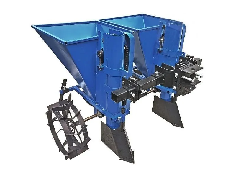 Тип картофелесажалки: двухрядная. Тип сельхозтехники: мини-трактор. Агрегатируется с: всем рядом мини-тракторов Беларус, НЕВА, Скаут, Shtenli. Требуемая мощность (л.с): от 12. Тип крепления: одноточечное. Дозатор: нет. Тип привода: цепной. Комплектация: прицепное устройство - 1 шт.; соединительный вал - 1 шт.; приводные колеса - 2 шт.; дисковые окучники - 4 шт.; килевидный сошник - 2 шт.. Ширина междурядья (см): 50-62.