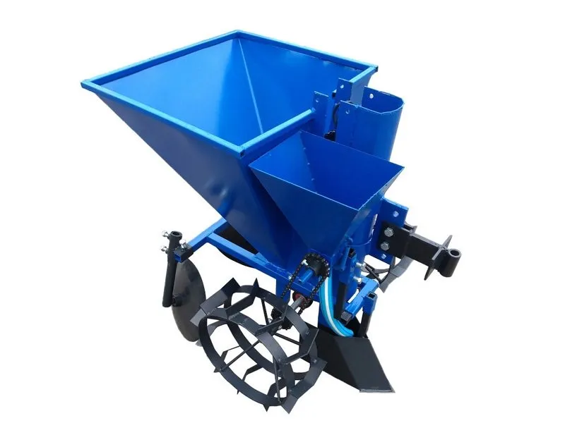 Тип картофелесажалки: однорядная. Тип сельхозтехники: мотоблок/культиватор. Агрегатируется с: всем рядом мотоблоков Беларус, Fermer, Hyundai, Patriot Урал и культиваторами. Требуемая мощность (л.с): от 6. Тип крепления: одноточечное. Дозатор: есть. Тип привода: от грунтозацепов. Ширина междурядья (см): 60. Производительность (га/ч): 0,05 - 0,07.