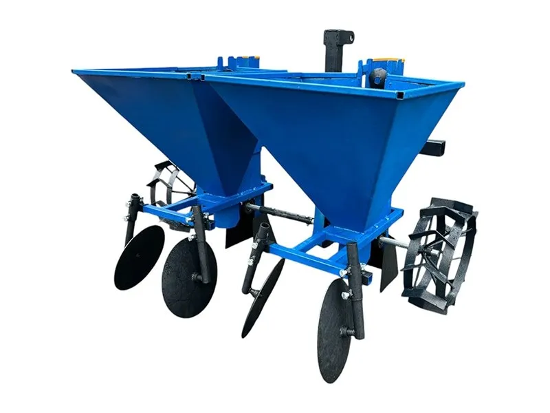 Тип картофелесажалки: двухрядная. Тип сельхозтехники: мини-трактор. Агрегатируется с: всем рядом мини-тракторов Беларус, НЕВА, Скаут, Shtenli. Требуемая мощность (л.с): от 12. Тип крепления: трехточечное. Дозатор: нет. Тип привода: от грунтозацепов. Комплектация: прицепное устройство - 1 шт.; соединительный вал - 1 шт.; приводные колеса - 2 шт.; дисковые окучники - 4 шт.; килевидный сошник - 2 шт.. Ширина междурядья (см): 50-62.