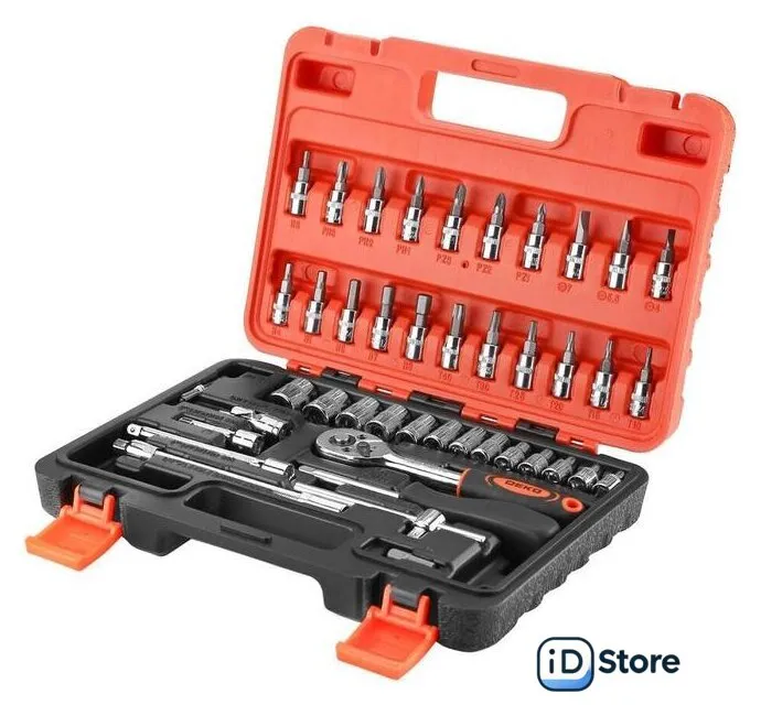 универсальный набор, 1/4", 46 предметов. Доставим по Минску в день заказа, при оформлении заявки до 14.00. Официальная гарантия.