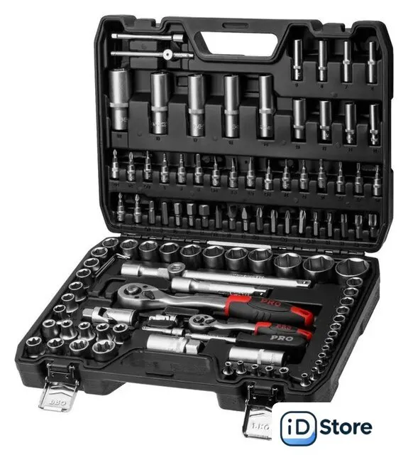 универсальный набор, 1/4", 1/2", 108 предметов. Доставим по Минску в день заказа, при оформлении заявки до 14.00. Официальная гарантия.