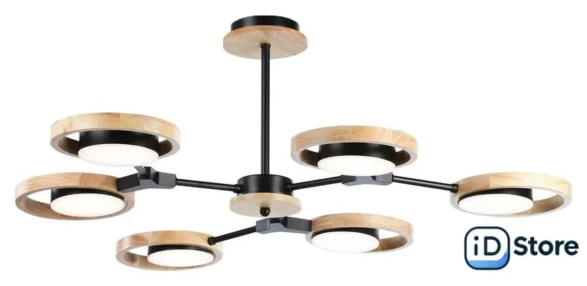 люстра средней высоты, плафон черный/бежевый (металл/дерево), каркас черный. Доставим по Минску в день заказа, при оформлении заявки до 14.00. Официальная гарантия.