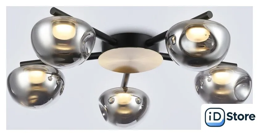 припотолочная люстра, плафон дымчатый (стекло), каркас черный. Доставим по Минску в день заказа, при оформлении заявки до 14.00. Официальная гарантия.