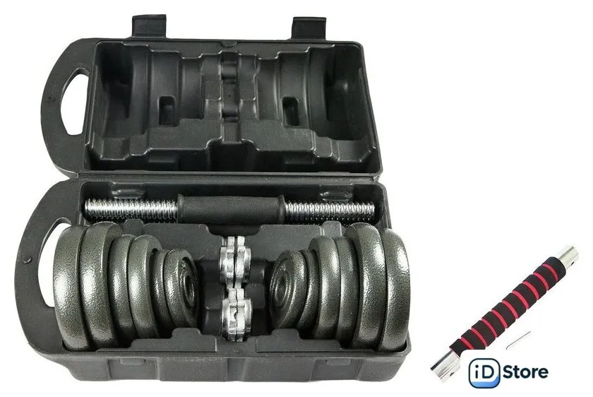 набор гантелей с соединительным грифом, 2 шт., вес снаряда 10 кг, конструкция: разборная, посадочный 26 мм, длина 35 см. Доставим по Минску в день заказа, при оформлении заявки до 14.00. Официальная гарантия.