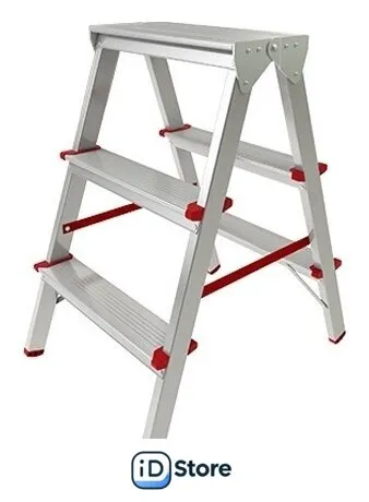лестница-стремянка, 3 ступени, алюминий, верхняя площадка. Доставим по Минску в день заказа, при оформлении заявки до 14.00. Официальная гарантия.