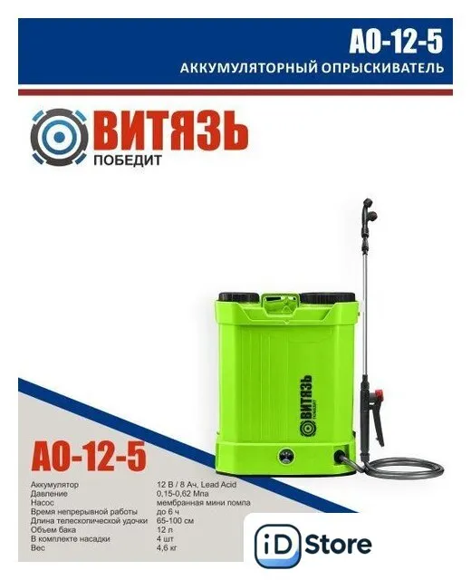 аккумуляторный, 12 л, 6 бар, телескопическая штанга, зеленый, 4.6 кг. Доставим по Минску в день заказа, при оформлении заявки до 14.00. Официальная гарантия.