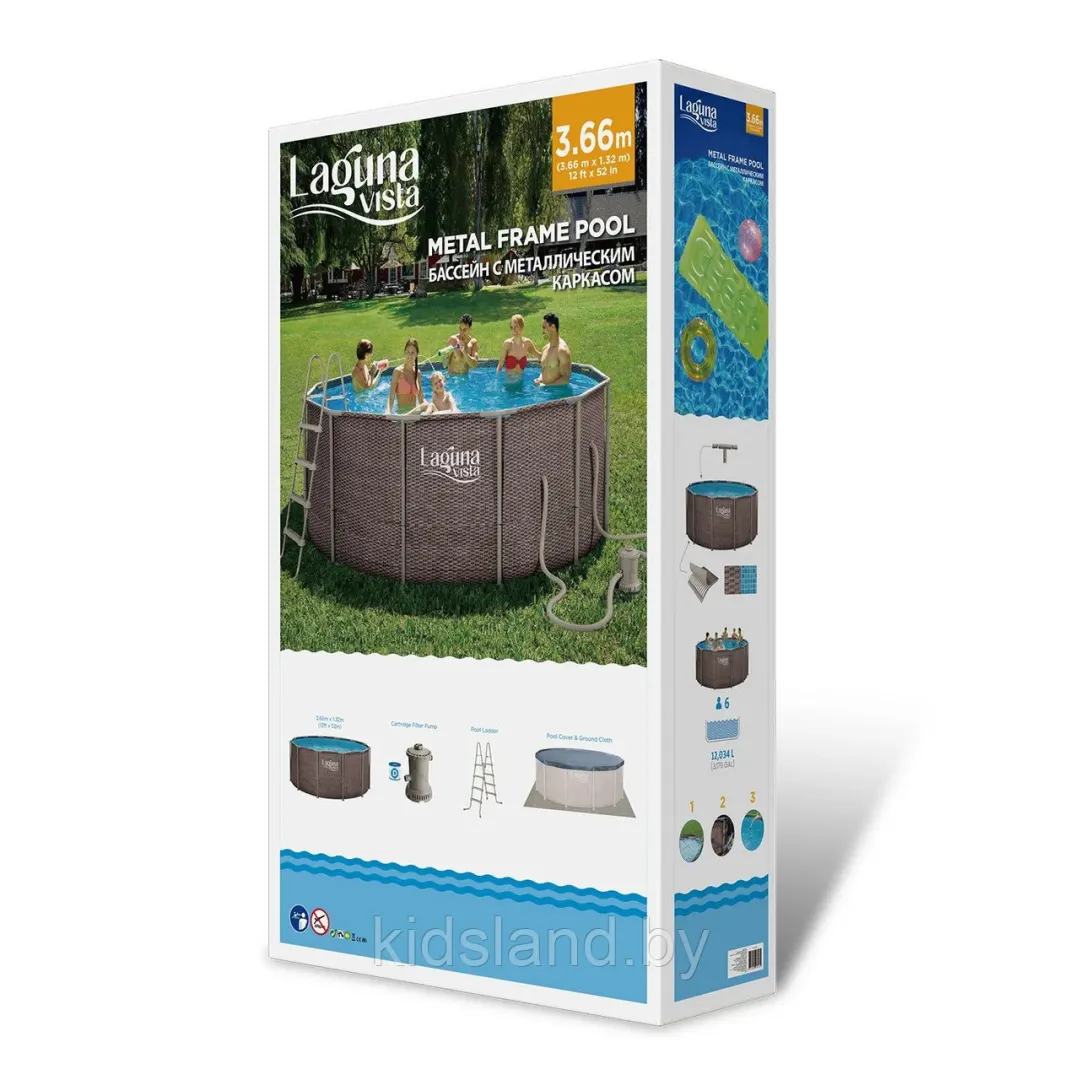 Бассейн каркасный 366x122 (тент, подложка, лестница, скиммер, фильтр, набор для чистки) Laguna Vista
