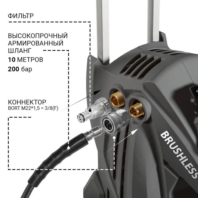 - Насадки: грязевая фреза, насадка для твердых поверхностей, веерная насадка