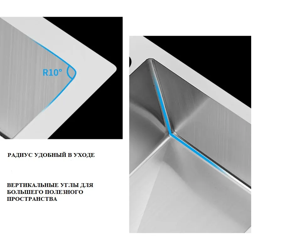 Кухонная мойка изготовлена из нержавеющей стали SUS304. Химический состав и свойства делают марку 304 наиболее подходящей для применения в пищевой промышленности. Она показывает высокие характеристики коррозийной стойкости в агрессивных средах. Шумоизоляция, нанесенная путем напыления, позволяет значительно снизить звук от потока воды.