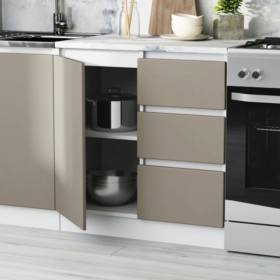 - Высота напольных шкафов с учетом столешницы и ножек: 85.0 см.