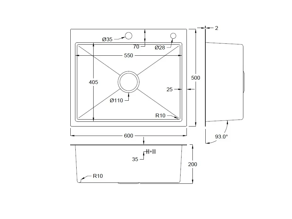 - Толщина мойки - 2 мм \ Чаша 1 мм