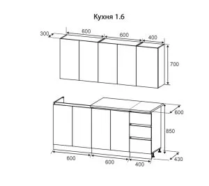 - Ширина кухни: 160.0 см.