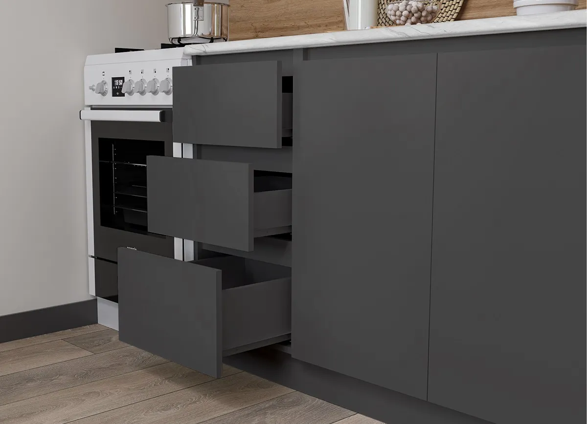 - Фурнитура выдвижных ящиков: Шариковые направляющие.