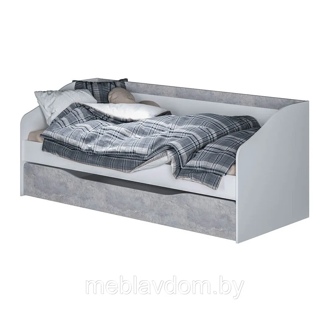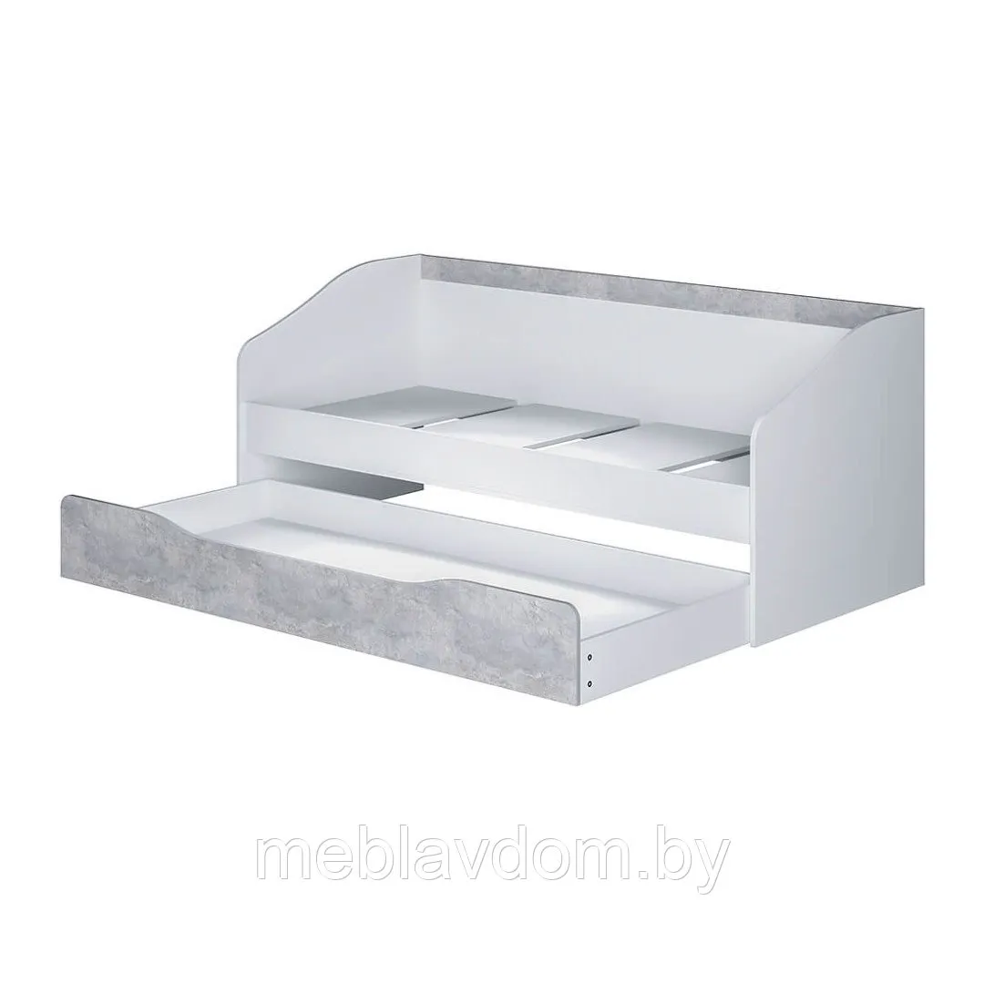 Кровать «Паскаль» — односпальная модель в современном стиле, размером 80х190 см. Доступны два варианта цвета: белый или цемент светлый, а также дуб атланта или ясень шимо.В комплект входит просторный выдвижной ящик на колесиках. Он не только удобен для хранения, но и может быть использован как дополнительное спальное место с размерами 1860х800 мм. Ящик выдвигается плавно благодаря роликовым опорам, установленным на дне кровати.