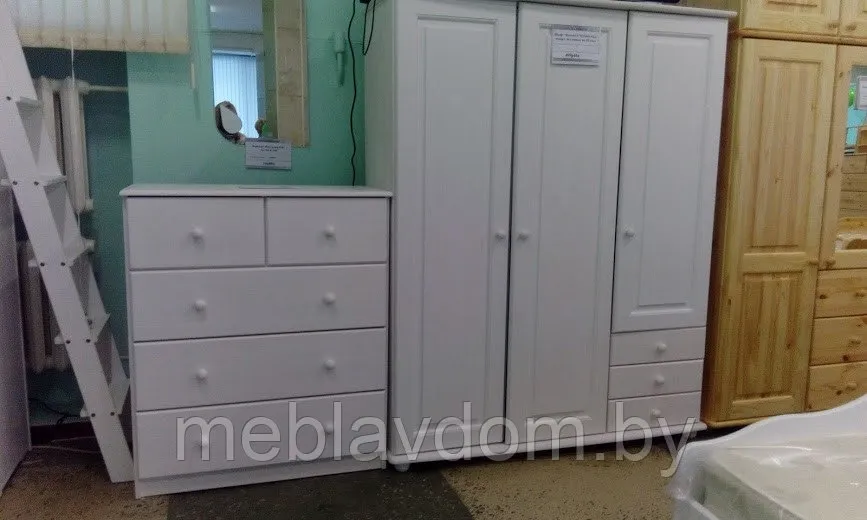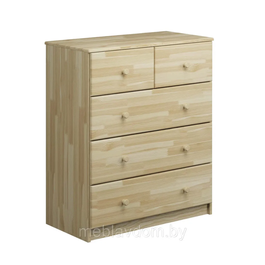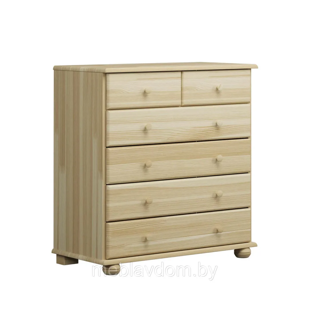 Тумба Макси-1 изготавливается из массива сосны, покрытого белым воском.Комод имеет 5 ящиков с шариковыми направляющими.