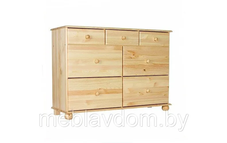 Комод изготавливается из массива сосны, покрытого лаком.Габаритные размеры комода: 1348х926х467 мм. (ВхШхГ).