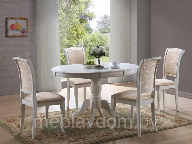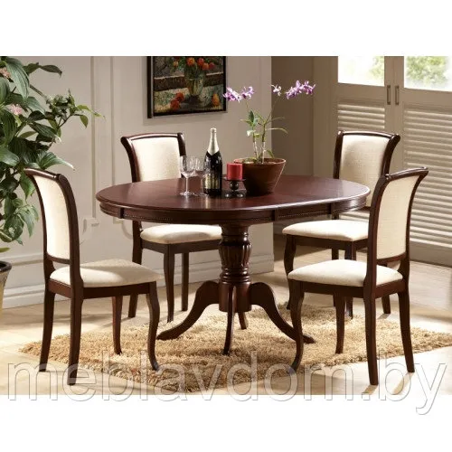 Форма: круглая столешница создаёт атмосферу уюта, способствуя непринуждённому общению за столом.