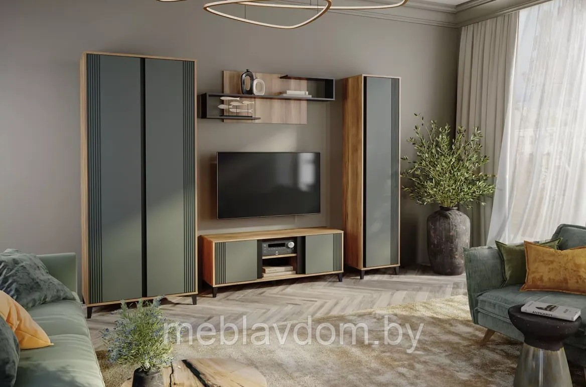 Гостиная Богемия — это стильное и лаконичное решение, которое гармонично впишется в любой интерьер. В её состав входят два шкафа с множеством полок, просторная тумба под ТВ и навесная полка для декора и необходимых вещей. Элегантность и уют в пространстве создаёт сочетание цветов "Дуб Барокко" и "Зелёный".Комплектация с габаритами (ШхВхГ):