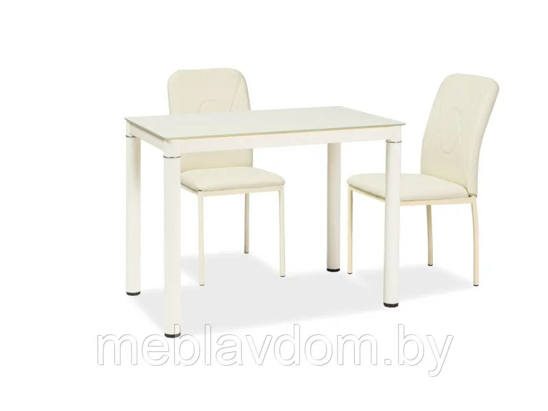 Габаритные размеры стола: 750х100х600 мм. Столешница стола обеденного изготавливается из стекла в цвете белый, серый, черный, кремовый. Ноги сталь окрашенная.