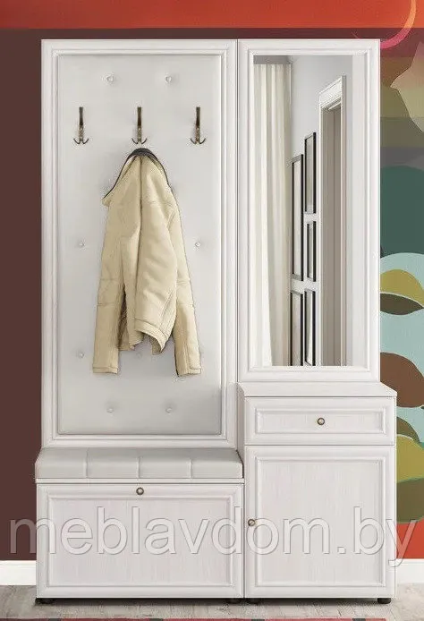 В линейку входит вешалка с тумбой, зеркало навесное, зеркало с декором, тумба, тумба для обуви, шкаф, шкаф угловой.