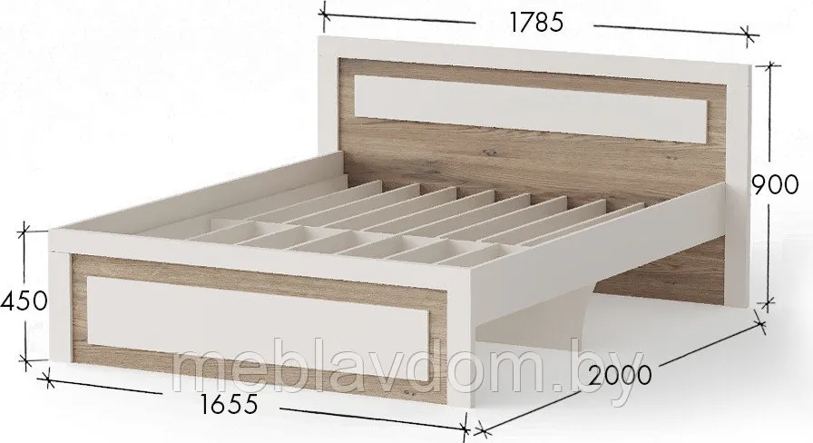 Габаритные размеры кровати: 660х1450х2090 мм. (ВхШхГ). Размер спального места кровати: 2000х1400 мм. (ШхГ).