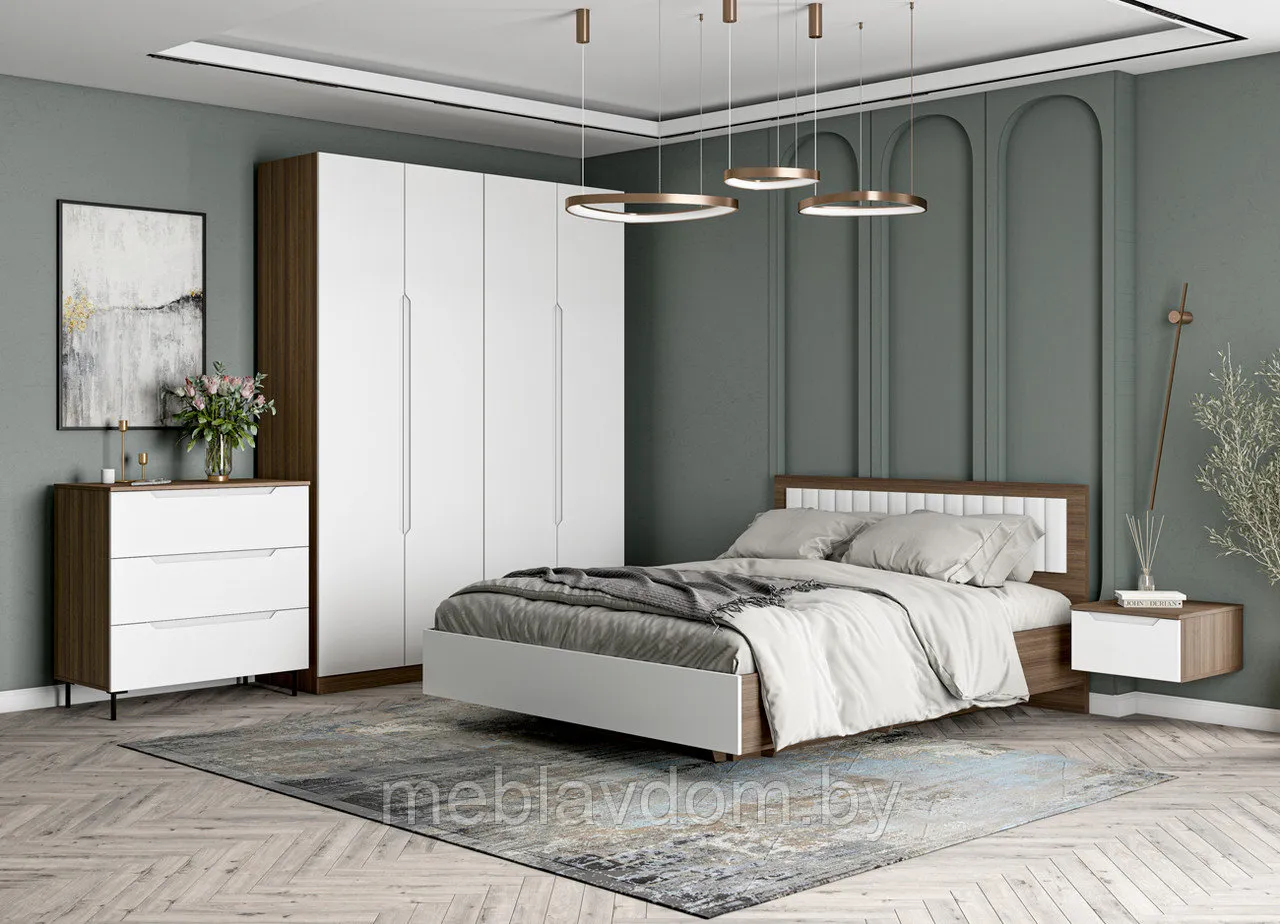 Спальня Мори – стильное и функциональное решение для обустройства интерьера в современном стиле. Сдержанное, неброское цветовое исполнение изделий, входящих в представленный набор мебели, а также их лаконичный, не перегруженный множеством деталей дизайн позволяют гармонично сочетать данный комплект с другими элементами обстановки.Комплектация с габаритами (ШхВхГ):