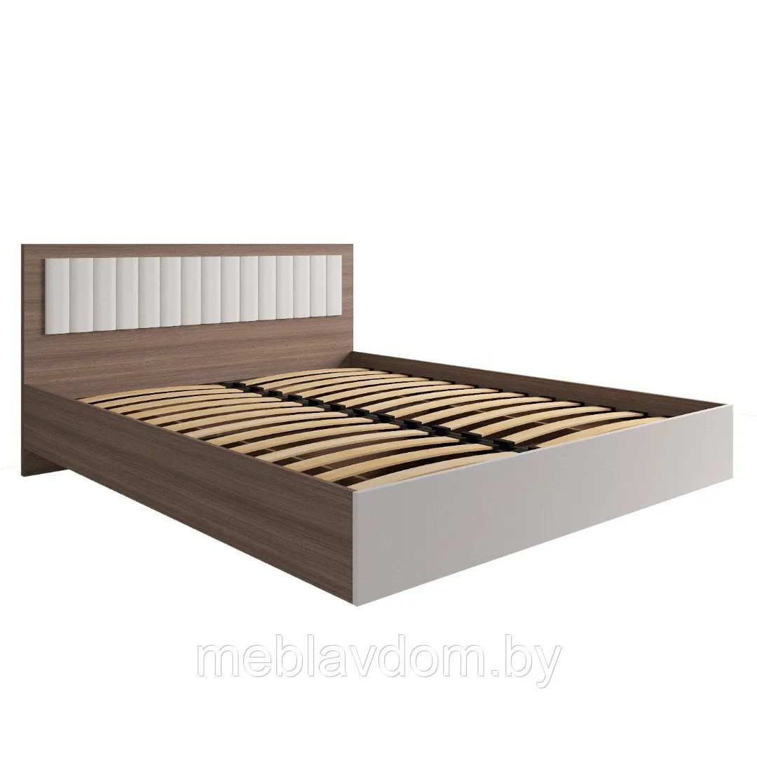 Кровать легко собирается благодаря прочной стяжке-евро и металлическим уголкам, что обеспечивает ее устойчивость и долговечность. Основание кровати изготовлено из качественного ЛДСП толщиной 16 мм и состоит из пяти широких ламелей (по 290 мм каждая), что способствует равномерному распределению нагрузки и отличной вентиляции матраса. Корпус кровати также выполнен из ЛДСП толщиной 16 мм.