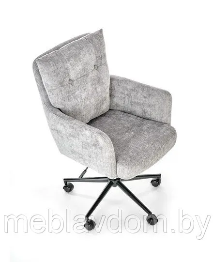 Вращающееся кресло Flores с мягкой спинкой обито структурированной тканью Odin в двух приглушённых цветовых вариантах. Чёрное пятилучевое основание оснащено роликами для лёгкого перемещения.