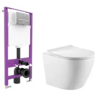 унитаз подвесной с инсталляцией, задний подвод воды, горизонтальный выпуск, двухрежимный слив торнадо, с сиденьем, безободковый. Возможны дополнительные скидки : при заказе комплекта из нескольких наименований, при повторной покупке в нашем магазине