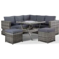 стол, пуф (2 шт.), диван (2 шт.), столешница стекло, основание - искусственный ротанг, материал сиденья: текстиль. Также доступны оригинальные подушки различных цветов .