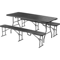 стол со стульями, сталь/пластик/пластик, максимальная нагрузка 150 кг, черный/коричневый цвет, 180x74x74 см, 23.5 кг. Возможны дополнительные скидки : при заказе комплекта из нескольких наименований, при повторной покупке в нашем магазине