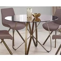 обеденный стол, классический, круглая форма, 1200×1200 мм, материал: стекло (столешница), окрашенная сталь (опоры). Возможны дополнительные скидки : при заказе комплекта из нескольких наименований, при повторной покупке в нашем магазине