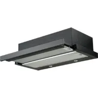 конструкция телескопическая, монтаж для встраивания, ширина 60 см, управление механическое/кнопочное, производительность мотора 870 м³/ч, цвет черный. Имеются в продаже оригинальные угольные фильтры для данной модели.