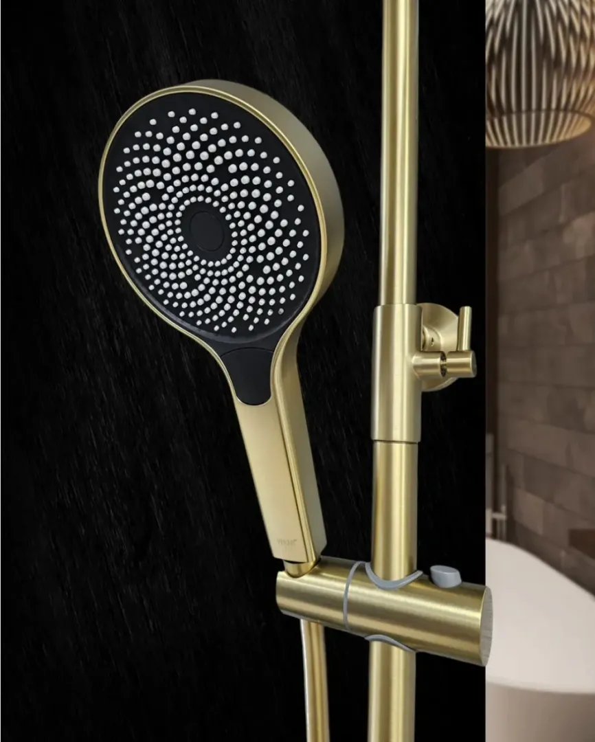 Душевая система Vieir 343562S – это стильное и функциональное решение для вашей ванной комнаты. Она представляет собой комплект, который состоит из душевой ручной лейки, верхнего душа, шланга, держателя и смесителя. Материал изготовления – латунь, благодаря которой душевая система обладает высокой прочностью и долговечностью. Цвет – Золотой-Сатин (Брашированный), что придает ей современный и эстетичный вид. Верхний тропический душ обеспечивает мягкий и приятный поток воды. Она легко перемещается по вертикальной оси, что позволяет выбрать оптимальный угол направления и высоту струи. Держатель для душевой ручной лейки также имеет возможность регулировки высоты, что делает использование душевой стойки более комфортным для пользователей разного роста. Смеситель оснащен керамическим картриджем, который обеспечивает плавное и точное регулирование температуры и напора воды. Все компоненты душевой стойки легко устанавливаются и подключаются, что делает процесс ее сборки простым и быстрым.