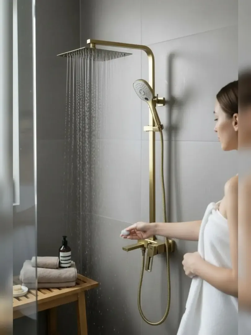 Душевая система Ledeme L2492Y в цвете «Золотой-сатин» - это гармоничное сочетание эстетики и функциональности. Изготовленная из высококачественной латуни, она обеспечивает долговечность и устойчивость к коррозии.