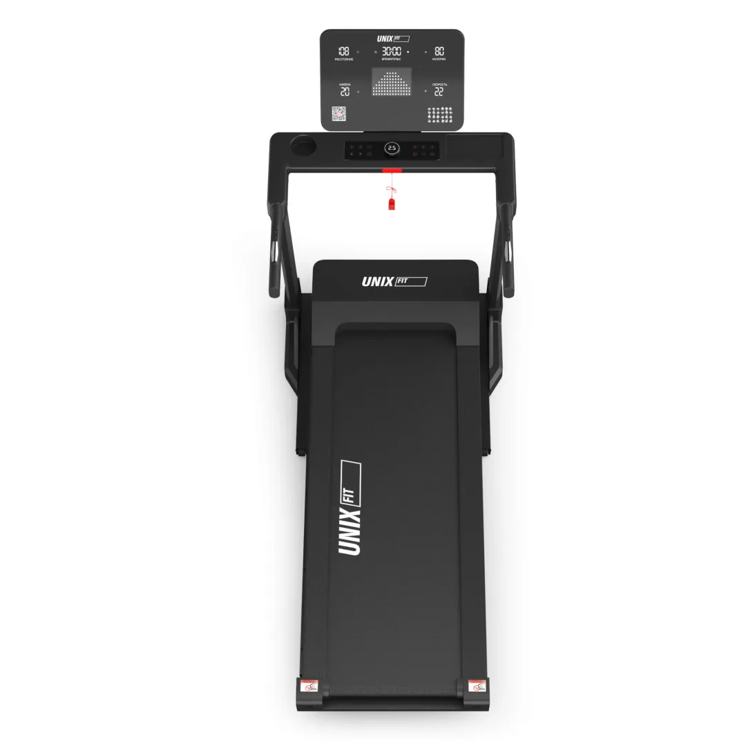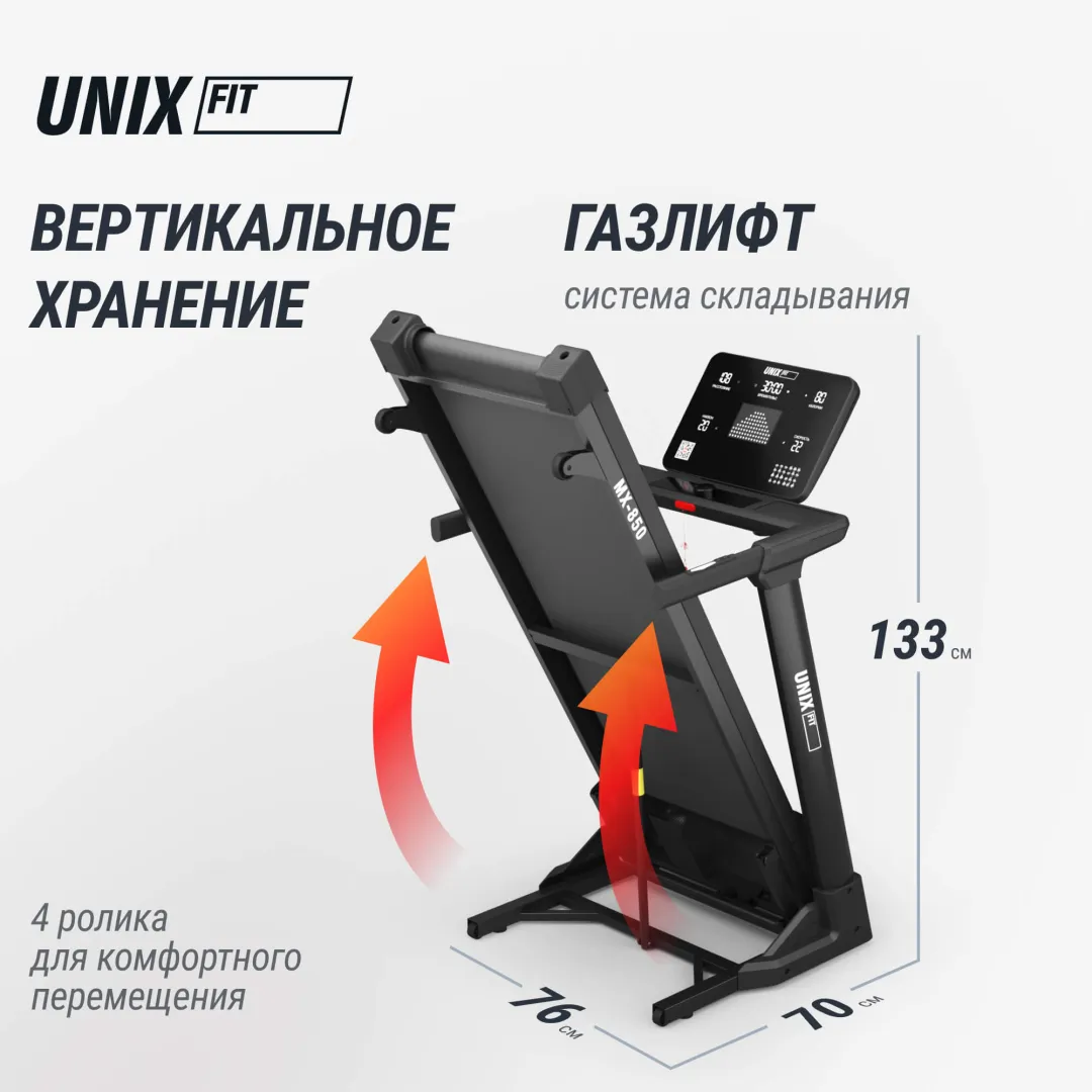 Тренажер поддерживает Bluetooth-подключение к популярным фитнес-приложениям FitShow, Kinomap и ZWIFT. Для отображения параметров тренировки предусмотрен информативный дисплей, а для удобства — держатель для планшета или книги. Практичность обеспечивают транспортировочные ролики и компенсаторы неровностей пола.